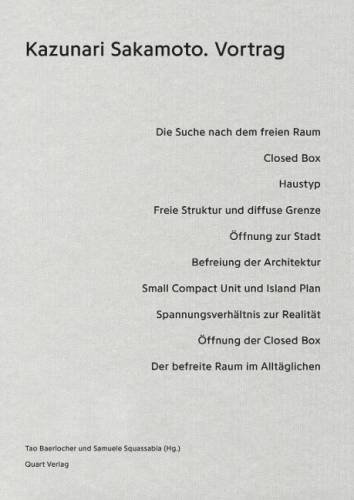 Kazunari Sakamoto (geboren 1943) hat sich in seinem Schaffen mehrheitlich mit kleineren Wohnbauten beschäftigt, in welchen er die Grundsätze der Architektur hinterfragt und auslotet. Seine Werke und theoretischen Arbeiten üben einen grossen Einfluss auf die Gegenwartsarchitektur Japans aus. Der Vortrag umfasst das Werk Kazunari Sakamotos von den Anfängen bis zum heutigen Datum. Dabei zeigt uns der Architekt anhand von seinen Projekten auf, wie er stetig versucht die Architektur von den gesellschaftlichen Zwängen und Begrenzungen zu befreien, mit dem Ziel, Räume zu schaffen, worin die Menschen sich frei entfalten können.
